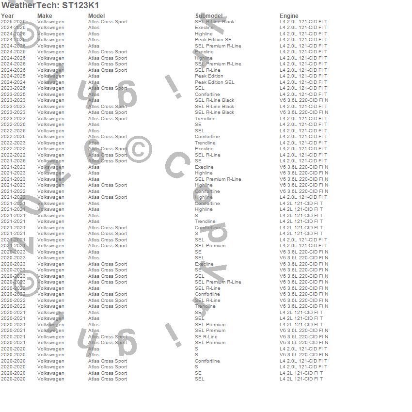 Below is an abbreviated list of applications for the Sill Protector.Atlas, Atlas Cross Sport, Volkswagen, 2026, 2025, 2024, 2023, 2022, 2021, 2020