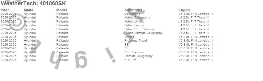 Below is an abbreviated list of applications for the Cargo Liner w/Bumper Protector.Palisade, Hyundai, 2026