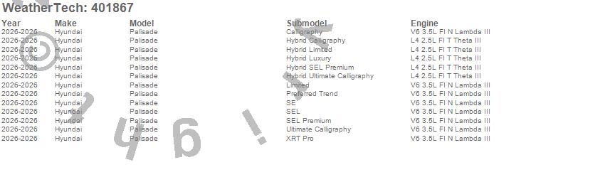 Below is an abbreviated list of applications for the Cargo Liner.Palisade, Hyundai, 2026