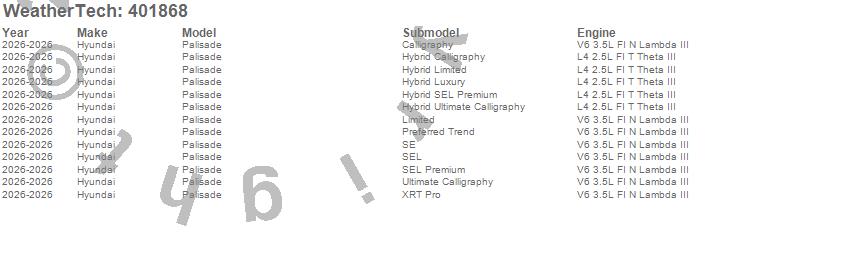 Below is an abbreviated list of applications for the Cargo Liner.Palisade, Hyundai, 2026