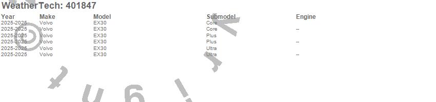 Below is an abbreviated list of applications for the Cargo Liner.EX30, Volvo, 2025