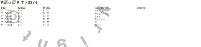 Below is an abbreviated list of applications for the Retrax Retractable FRC-4000 Tonneau Cover.F-150, Ford, 2020, 2019, 2018, 2017, 2016, 2015