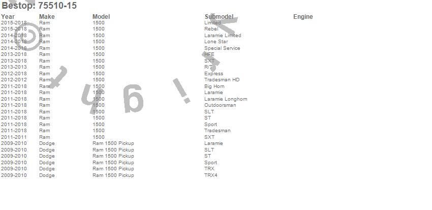 Below is an abbreviated list of applications for the TrekStep Rear Mount Step.1500, Ram 1500, Dodge, Ram, 2018, 2017, 2016, 2015, 2014, 2013, 2012, 2011, 2010, 2009