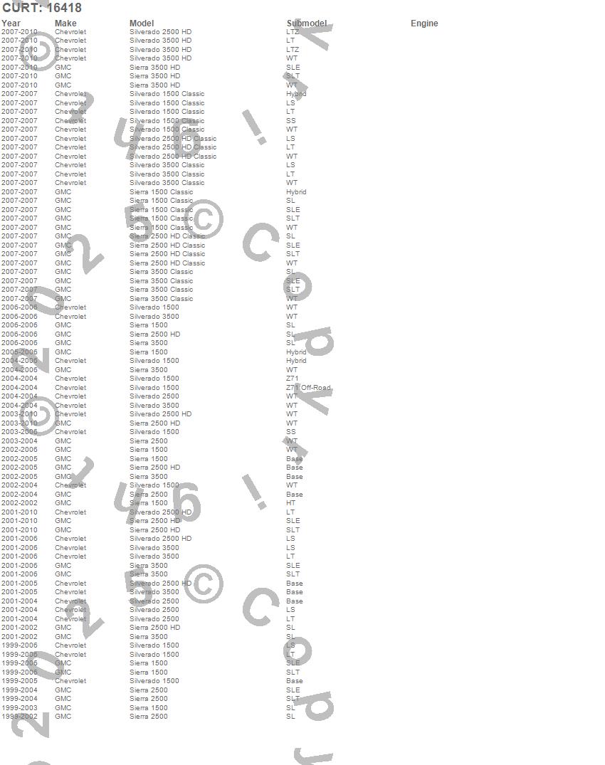 Below is an abbreviated list of applications for the Fifth Wheel Custom Bracket Kit.Sierra 1500, Sierra 1500 Classic, Sierra 2500, Sierra 2500 HD, Sierra 2500 HD Classic, Sierra 3500, Sierra 3500 Classic, Sierra 3500 HD, Silverado 1500, Silverado 1500 Classic, Silverado 2500, Silverado 2500 HD, Silverado 2500 HD Classic, Silverado 3500, Silverado 3500 Classic, Silverado 3500 HD, Chevrolet, GMC, 2010, 2009