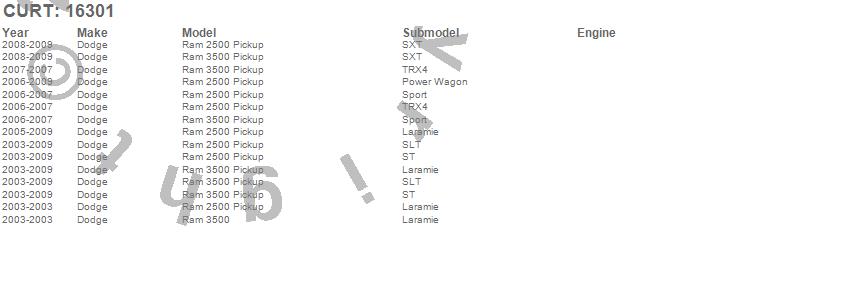 Below is an abbreviated list of applications for the Fifth Wheel Custom Bracket Kit.Ram 2500, Ram 3500, Dodge, 2009, 2008, 2007, 2006, 2005, 2004, 2003