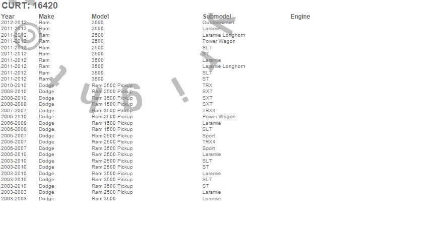 Brand: CURTPart Number: 16420Fifth Wheel Trailer Hitch Bracket Type: Incl. Hardware - No Drilling Req. - Use w/5th Wheel Rails PN[16104/16204] - Sold SeparatelyUPC: 612314164202