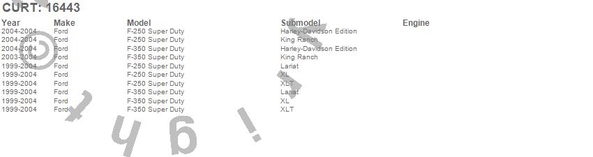 Brand: CURTPart Number: 16443Fifth Wheel Trailer Hitch Bracket Type: Incl. Hardware - Drilling Req. - Use w/5th Wheel Rails PN[16104/16204] - Sold SeparatelyUPC: 612314164431