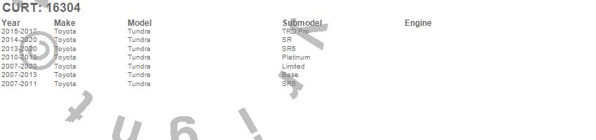 Brand: CURTPart Number: 16304Fifth Wheel Trailer Hitch Bracket Type: Incl. Hardware - Drilling Req. - Required For 5th Wheel Rails - Sold SeparatelyUPC: 612314163045