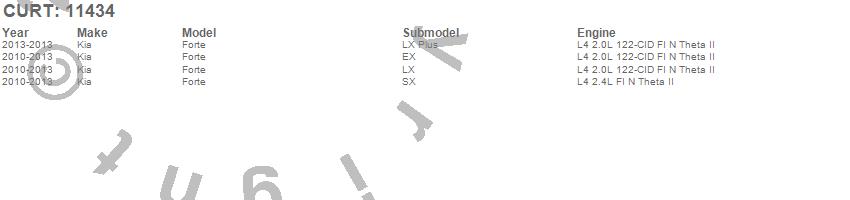 Brand: CURTPart Number: 11434Trailer Hitch Type: Rear - 2000lbs. Gross Trailer Weight - 200lbs. Tongue WeightUPC: 612314009145