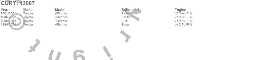 Below is an abbreviated list of applications for the Class III 2 in. Receiver Hitch.4Runner, Toyota, 2002, 2001, 2000, 1999, 1998, 1997, 1996
