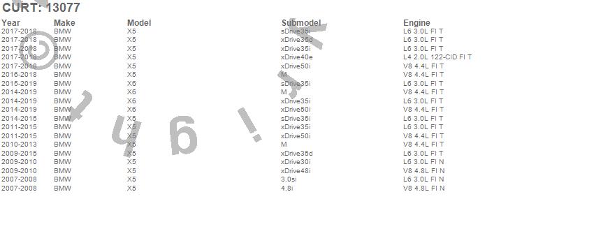 Below is an abbreviated list of applications for the Class III 2 in. Receiver Hitch.X5, X6, BMW, 2019, 2018, 2017, 2016, 2015, 2014, 2013, 2012, 2011, 2010, 2009, 2008, 2007