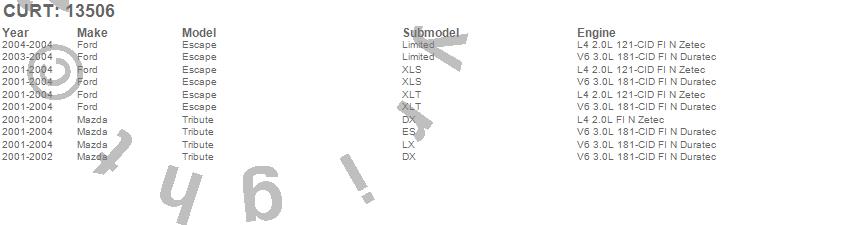 Below is an abbreviated list of applications for the Class III 2 in. Receiver Hitch.Escape, Tribute, Ford, Mazda, 2004, 2003, 2002, 2001