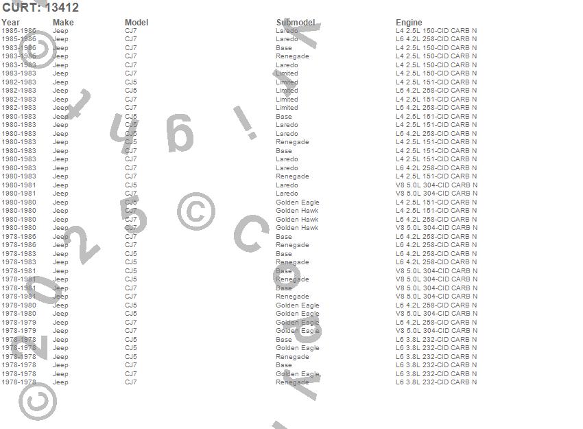 Below is an abbreviated list of applications for the Class III 2 in. Receiver Hitch.CJ5, CJ7, Jeep, 1986, 1985, 1984, 1983, 1982, 1981, 1980, 1979, 1978