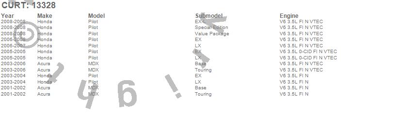 Below is an abbreviated list of applications for the Class III 2 in. Receiver Hitch.MDX, Pilot, Acura, Honda, 2008, 2007, 2006, 2005, 2004, 2003, 2002, 2001