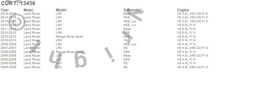 Below is an abbreviated list of applications for the Class III 2 in. Receiver Hitch.LR3, LR4, Range Rover Sport, Land Rover, 2016, 2015, 2014, 2013, 2012, 2011, 2010, 2009, 2008, 2007, 2006, 2005
