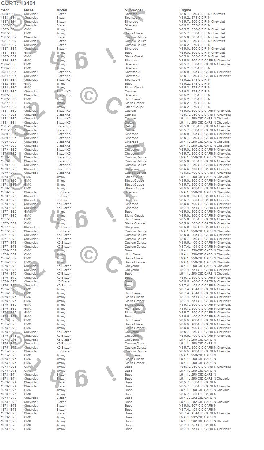Below is an abbreviated list of applications for the Class III 2 in. Receiver Hitch.Blazer, Blazer K5, Jimmy, K5 Blazer, Chevrolet, GMC, 1991, 1990, 1989, 1988, 1987, 1986, 1985, 1984, 1983, 1982, 1981, 1980, 1979, 1978