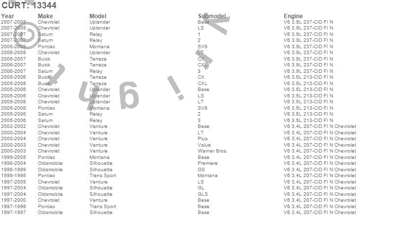 Below is an abbreviated list of applications for the Class III 2 in. Receiver Hitch.Montana, Relay, Silhouette, Terraza, Trans Sport, Uplander, Venture, Buick, Chevrolet, Oldsmobile, Pontiac, Saturn, 2009, 2008, 2007, 2006, 2005, 2004, 2003, 2002