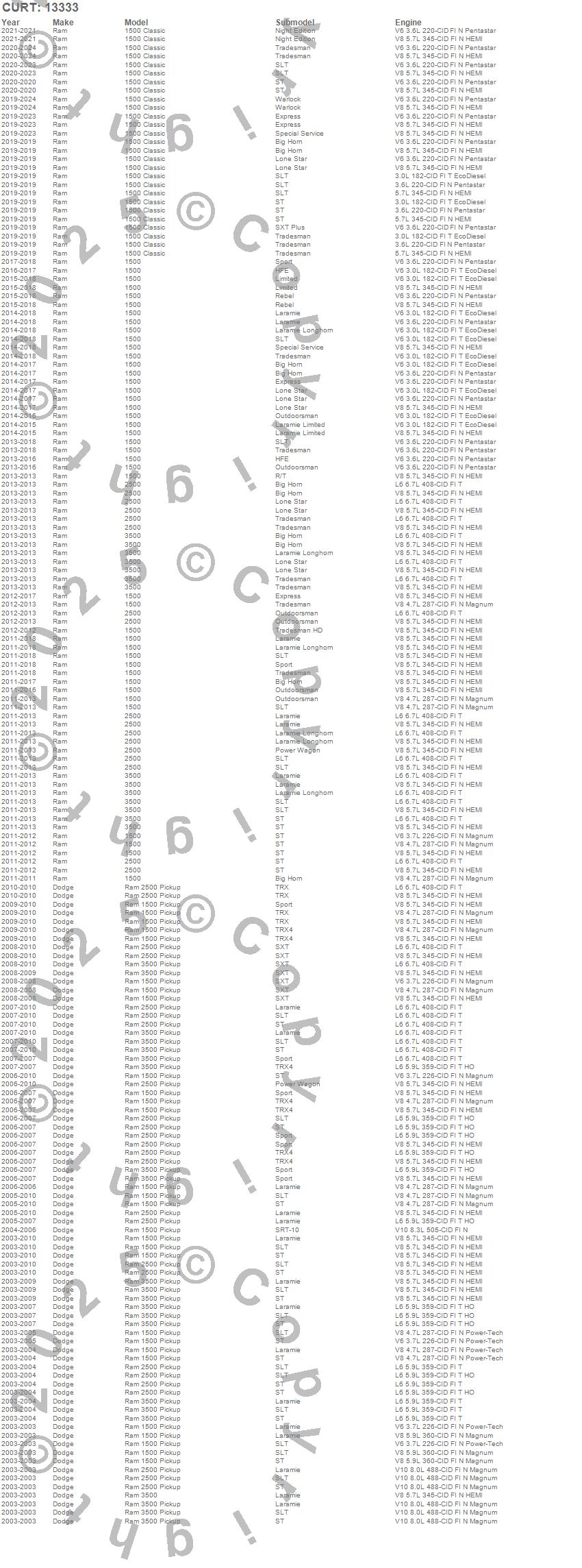 Below is an abbreviated list of applications for the Class III 2 in. Receiver Hitch.1500, 1500 Classic, 2500, 3500, Ram 1500, Ram 2500, Ram 3500, Dodge, Ram, 2024, 2023, 2022, 2021, 2020, 2019, 2018, 2017, 2016, 2015, 2014