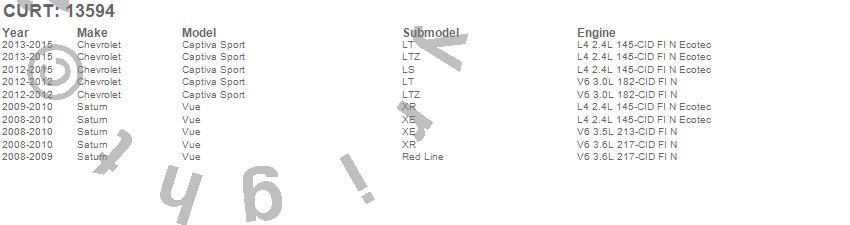 Below is an abbreviated list of applications for the Class III 2 in. Receiver Hitch.Captiva Sport, Vue, Chevrolet, Saturn, 2015, 2014, 2013, 2012, 2010, 2009, 2008