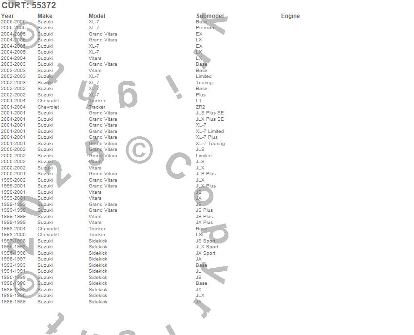 Below is an abbreviated list of applications for the Replacement OEM Tow Package Wiring Harness.Grand Vitara, Tracker, Vitara, XL-7, Chevrolet, Suzuki, 2006, 2005, 2004, 2003, 2002, 2001, 2000, 1999, 1998