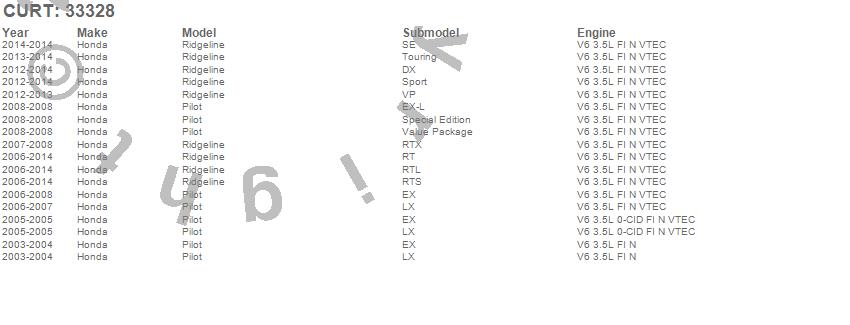 Below is an abbreviated list of applications for the 2 in. Receiver Hitch.Pilot, Ridgeline, Honda, 2014, 2013, 2012, 2011, 2010, 2009, 2008, 2007, 2006, 2005, 2004, 2003