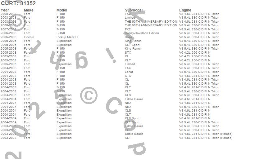 Below is an abbreviated list of applications for the 2 in. Receiver Hitch.Expedition, F-150, Mark LT, Ford, Lincoln, 2008, 2007, 2006, 2005, 2004, 2003