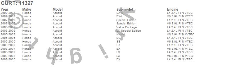 Brand: CURTPart Number: 11327Trailer Hitch Type: Rear - 2000lbs. Gross Trailer Weight - 200lbs. Tongue WeightUPC: 612314011773