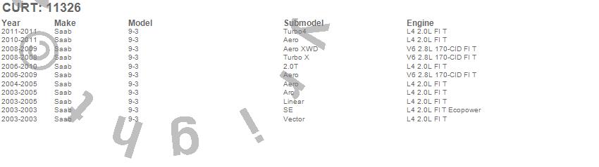 Below is an abbreviated list of applications for the Class I 1.25 in. Receiver Hitch.9-3, Saab, 2011, 2010, 2009, 2008, 2007, 2006, 2005, 2004, 2003