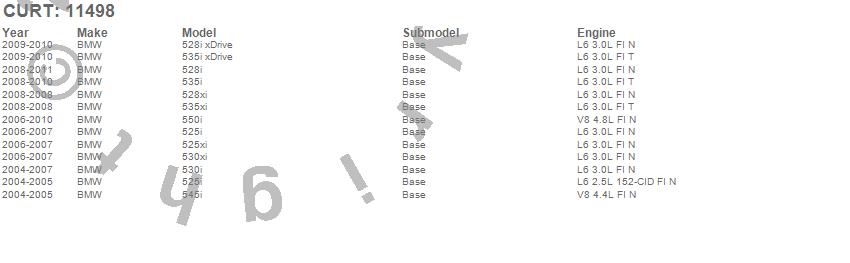 Below is an abbreviated list of applications for the Class I 1.25 in. Receiver Hitch.525i, 525xi, 528i, 528i xDrive, 528xi, 530i, 530xi, 535i, 535i xDrive, 535xi, 545i, 550i, BMW, 2011, 2010, 2009, 2008, 2007, 2006, 2005