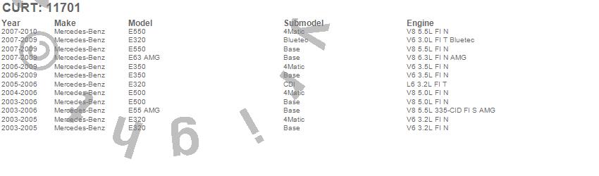 Below is an abbreviated list of applications for the Class I 1.25 in. Receiver Hitch.E320, E350, E500, E55 AMG, E550, E63 AMG, Mercedes-Benz, 2010, 2009, 2008, 2007, 2006, 2005, 2004, 2003