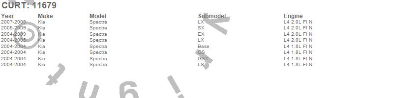 Below is an abbreviated list of applications for the Class I 1.25 in. Receiver Hitch.Spectra, Kia, 2009, 2008, 2007, 2006, 2005, 2004