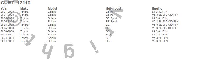 Below is an abbreviated list of applications for the Class II 1.25 in. Receiver Hitch.Solara, Toyota, 2008, 2007, 2006, 2005, 2004