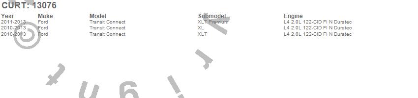 Below is an abbreviated list of applications for the Class III 2 in. Receiver Hitch.Transit Connect, Ford, 2013, 2012, 2011, 2010