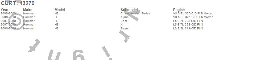 Below is an abbreviated list of applications for the Class III 2 in. Receiver Hitch.H3, Hummer, 2010, 2009, 2008, 2007, 2006