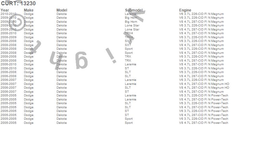 Below is an abbreviated list of applications for the Class III 2 in. Receiver Hitch.Dakota, Dodge, 2010, 2009, 2008, 2007, 2006, 2005