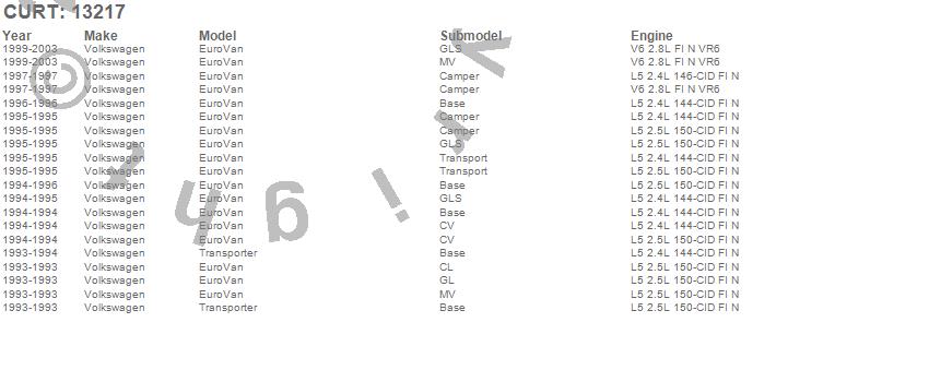 Below is an abbreviated list of applications for the Class III 2 in. Receiver Hitch.EuroVan, Transporter, Volkswagen, 2003, 2002, 2001, 2000, 1999, 1997, 1996, 1995, 1994, 1993