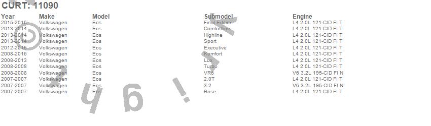 Below is an abbreviated list of applications for the Class I 1.25 in. Receiver Hitch.Eos, Volkswagen, 2016, 2015, 2014, 2013, 2012, 2011, 2010, 2009, 2008, 2007