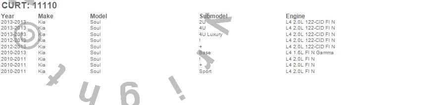 Below is an abbreviated list of applications for the Class I 1.25 in. Receiver Hitch.Soul, Kia, 2013, 2012, 2011, 2010