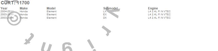 Below is an abbreviated list of applications for the Class I 1.25 in. Receiver Hitch.Element, Honda, 2011, 2010, 2009, 2008, 2007, 2006, 2005, 2004, 2003