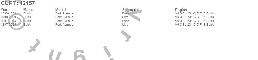 Below is an abbreviated list of applications for the Class II 1.25 in. Receiver Hitch.Park Avenue, Buick, 2005, 2004, 2003, 2002, 2001, 2000, 1999, 1998, 1997