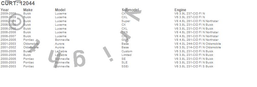 Below is an abbreviated list of applications for the Class II 1.25 in. Receiver Hitch.Aurora, Bonneville, LeSabre, Lucerne, Buick, Oldsmobile, Pontiac, 2009, 2008, 2007, 2006, 2005, 2004, 2003, 2002, 2001, 2000