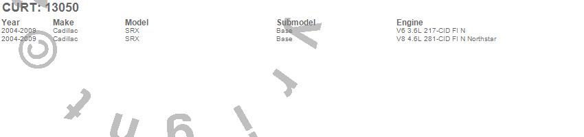 Below is an abbreviated list of applications for the Class III 2 in. Receiver Hitch.SRX, Cadillac, 2009, 2008, 2007, 2006, 2005, 2004