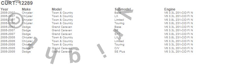 Below is an abbreviated list of applications for the Class II 1.25 in. Receiver Hitch.Grand Caravan, Town & Country, Chrysler, Dodge, 2007, 2006, 2005