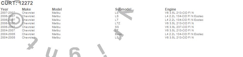Below is an abbreviated list of applications for the Class II 1.25 in. Receiver Hitch.Malibu, Chevrolet, 2007, 2006, 2005, 2004