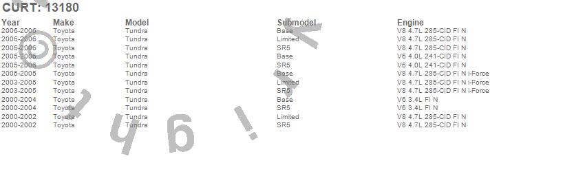 Below is an abbreviated list of applications for the Class III 2 in. Receiver Hitch.Tundra, Toyota, 2006, 2005, 2004, 2003, 2002, 2001, 2000