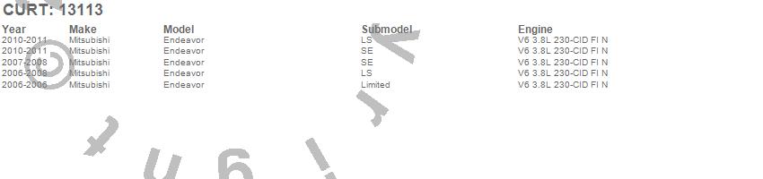 Below is an abbreviated list of applications for the Class III 2 in. Receiver Hitch.Endeavor, Mitsubishi, 2011, 2010, 2008, 2007, 2006