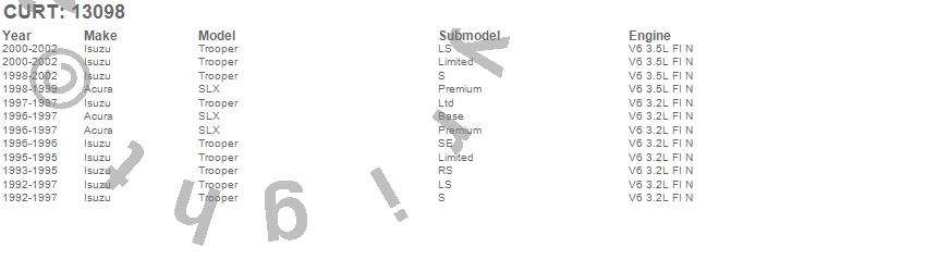 Below is an abbreviated list of applications for the Class III 2 in. Receiver Hitch.SLX, Trooper, Acura, Isuzu, 2002, 2001, 2000, 1999, 1998, 1997, 1996, 1995, 1994, 1993, 1992