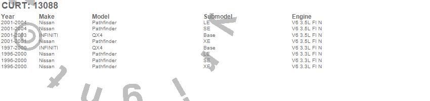 Below is an abbreviated list of applications for the Class III 2 in. Receiver Hitch.Pathfinder, QX4, INFINITI, Nissan, 2004, 2003, 2002, 2001, 2000, 1999, 1998, 1997, 1996