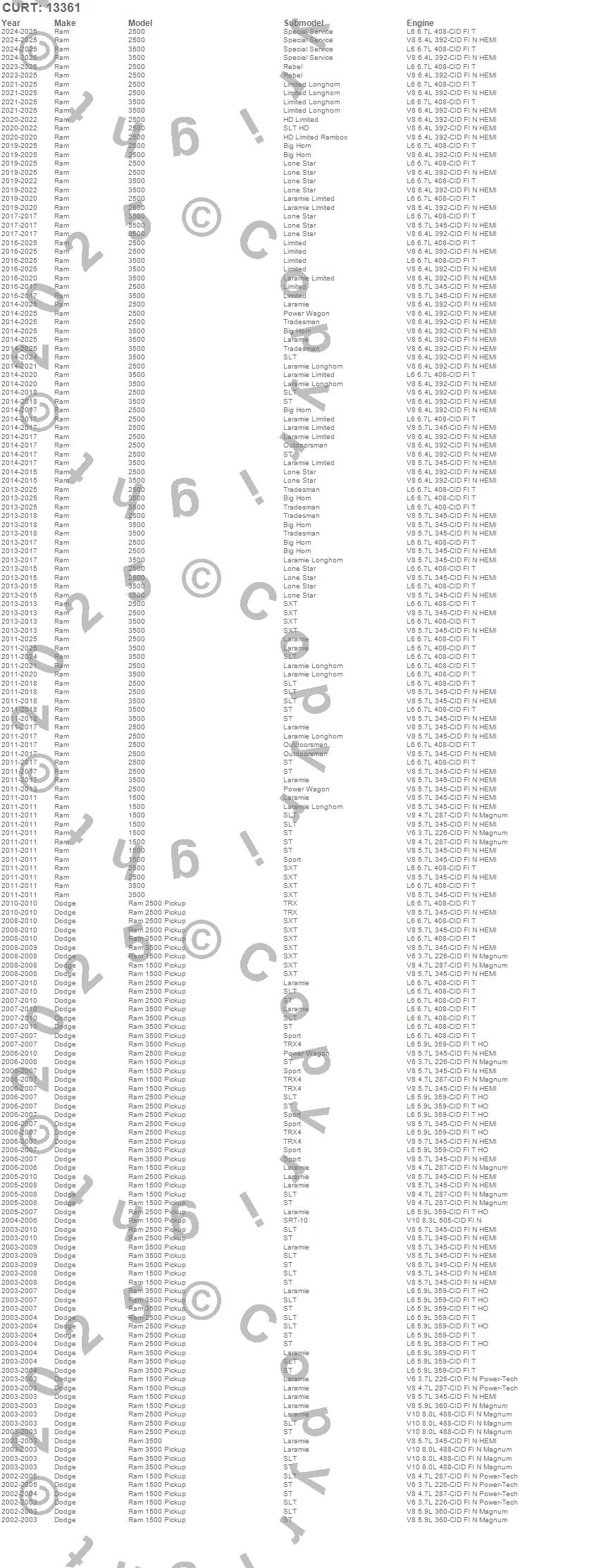 Below is an abbreviated list of applications for the Class III 2 in. Receiver Hitch.1500, 2500, 3500, Ram 1500, Ram 2500, Ram 3500, Dodge, Ram, 2026, 2025, 2024, 2023, 2022, 2021, 2020, 2019, 2018, 2017, 2016, 2015