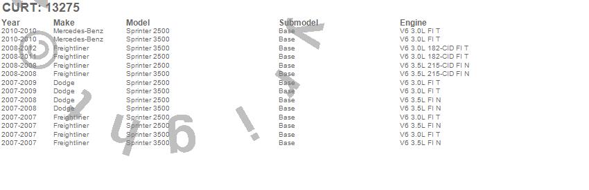 Below is an abbreviated list of applications for the Class III 2 in. Receiver Hitch.Sprinter 2500, Sprinter 3500, Dodge, Freightliner, Mercedes-Benz, 2012, 2011, 2010, 2009, 2008, 2007